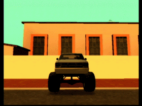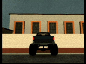 Car name: Monster Description: Tired of traffic? Run over it with this gigantic truck! Unique features: Large wheels, high suspension. Enthusiastic announcer not included. Looks like: A monster truck. Probable locations: Parked outside Millie's, unlocked after 50% progress. Can be won by completing 8-track challenge in Los Santos. Parked in a trailer park near the Flint intersection. Similar Cars: Can you mod it? No, you can't. Can you export it? No, you can't. Can you import it? Yes, you can. Import bonus vehicle. Available after 5 cars are exported from Board 1, $32,000. Other comments: R1 triggers four wheel steering instead of hand brake.